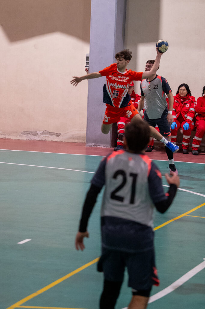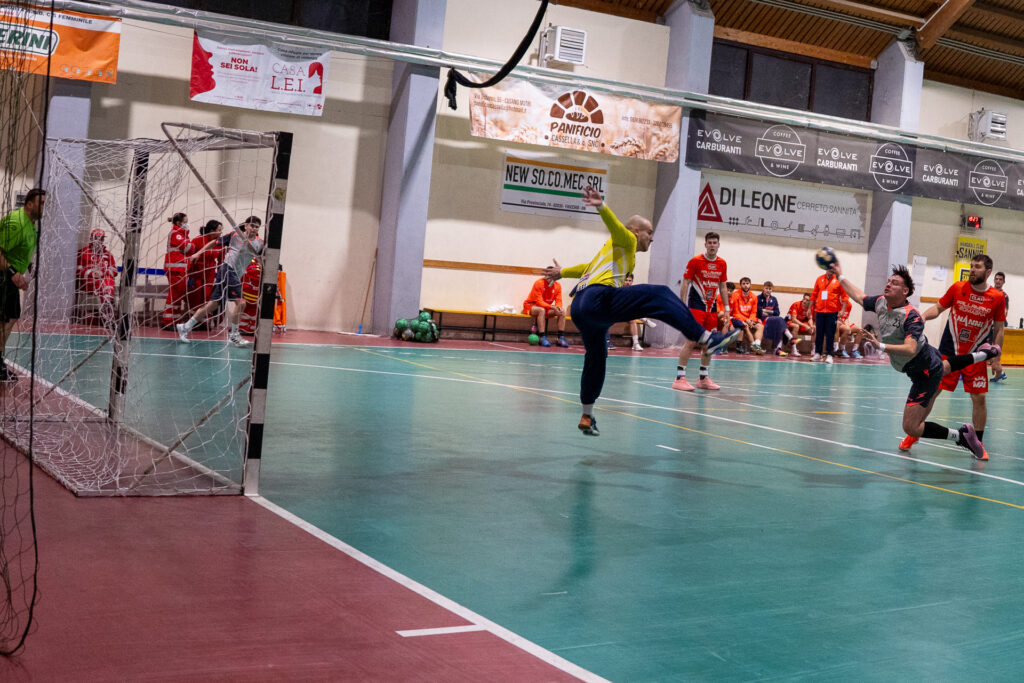 Il Romagna resta totalmente concentrato anche in avvio di ripresa, quando scappa con 4 gol in 2 minuti: segnano Bach, Barattini, Tondini e Ramondini e per Sannio cala la notte, quella più buia, perché sul 20-8 le velleità per la rimonta sono davvero ridotte al lumicino. Tanto più che il Romagna non abbassa la guardia, ruotando tutti gli effettivi a disposizione. Al 12’ sui nove metri si eleva Tondini per la frustata del 26-10; a metà frazione il punteggio è di 29-14 e in campo, da qualche minuto, c’è un Romagna alternativo, ma ugualmente prolifico: Pulli tra i pali (sette parate nel frangente), Ariotti e Capra alle ali, Ceroni (unico pivot disponibile) e sugli esterni Mengoli, Zavagli e Bianconi. Il Romagna corre, difende, segna e mantiene alta l’intensità. Due paraate di fila di Pulli lanciano il Romagna sul 30-14 siglato da Barattini. Si arriva ai minuti finali, senza grandi interruzioni e con una buona fluidità complessiva del gioco, agevolata anche dall’atteggiamento del Sannio che non si lascia andare e cerca comunque sempre di creare gioco. Dopo l’insistita iniziativa (e gol) di Bianconi, il Romagna raggiunge il massimo vantaggio (+18) sul 35-17 al 27’ con la prima (bella) rete in serie A in carriera di Marco Capra, un’ala di cui si sentirà parlare in futuro! Il match finisce sul 35-18 e il 2° posto assoluto mantenuto dal Romagna.