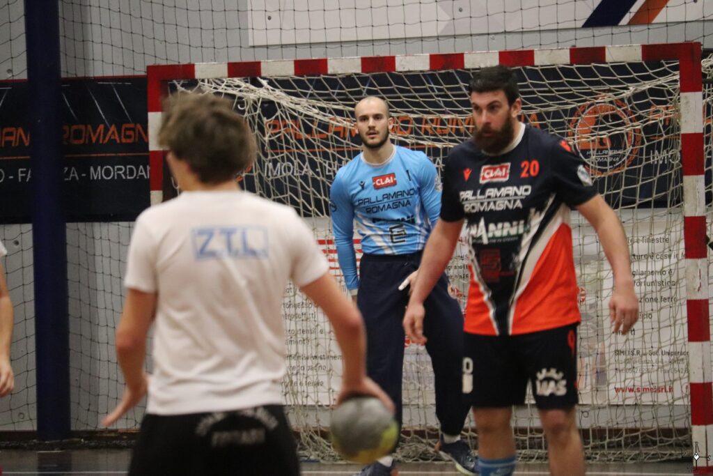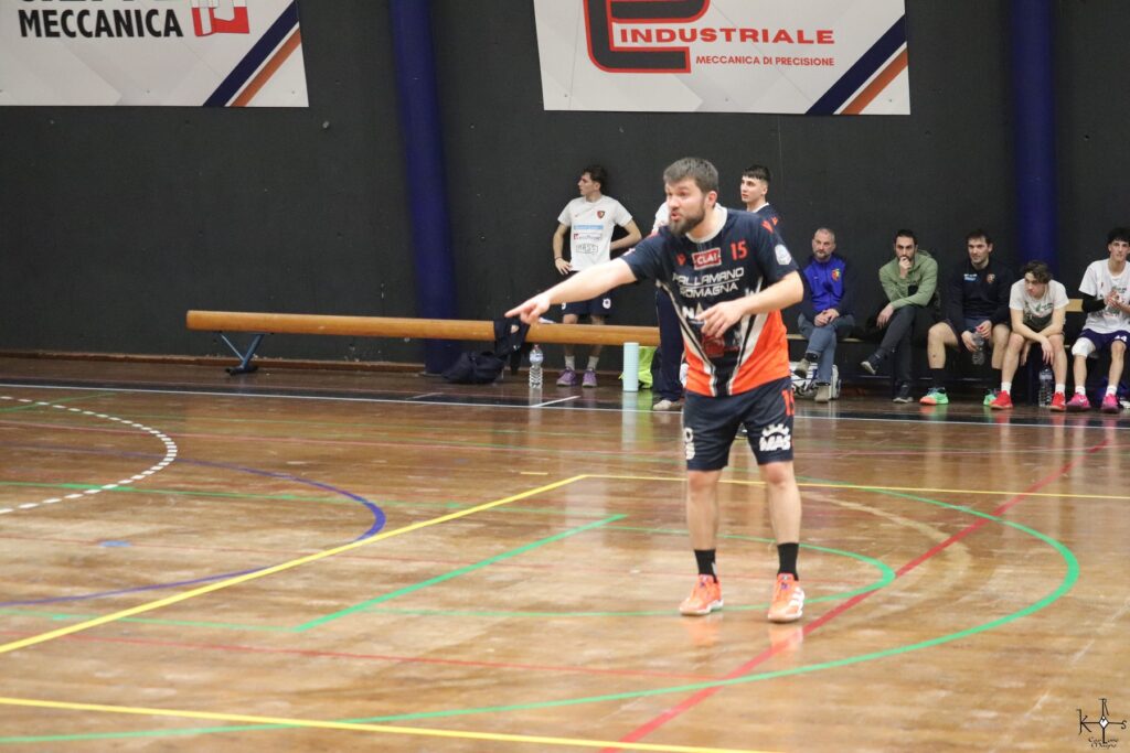 Maistrello intercetta il suo secondo rigore di serata e al 19’ Tondini si alza per il 28-25. Gli ospiti reagiscono riportandosi sotto sul 29-28 al 22’ (a segno anche Rinaldo). Tondini bissa il bel movimento in elevazione di qualche azione prima e firma il 30-28 a 7’ dalla sirena. Al 25’ Mengoli si procura e realizza un rigore e, subito dopo, segna il 3° gol personale che vale il +3 (32-29). Entra e segna anche Manuele Folli, quindi, a 3’ dalla sirena il Romagna allunga col break decisivo (35-31) griffato Rotaru (abile nel contrasto avversario) e Tondini.