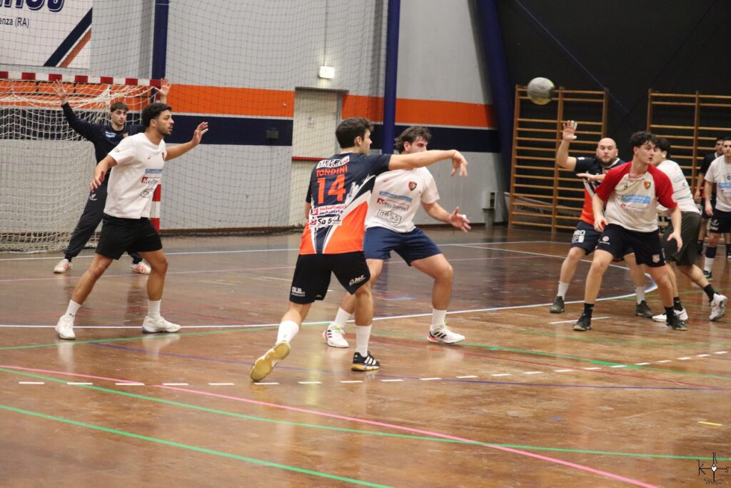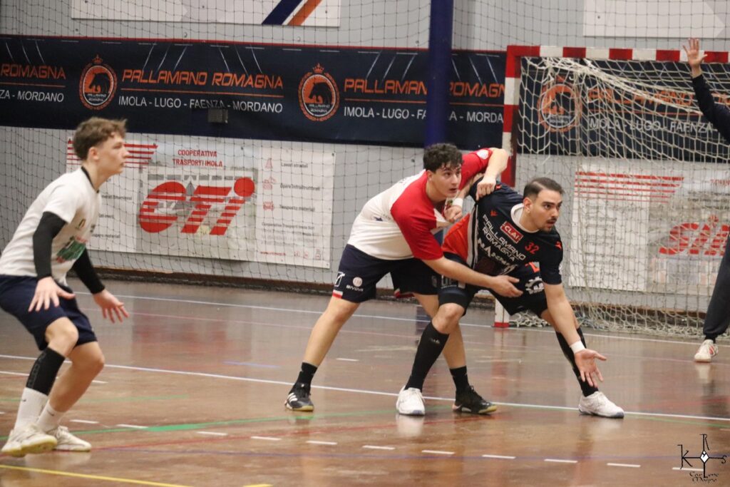 Ottimo bottino per Noè Ramondini (7 reti), il folletto imolese che risulterà il miglior marcatore della serata tra gli arancioblu. Seguono (5 a testa) Rotaru e Tondini che fissa il tabellone sul 38-33 con un pazzesco gol in elevazione a fil di sirena.